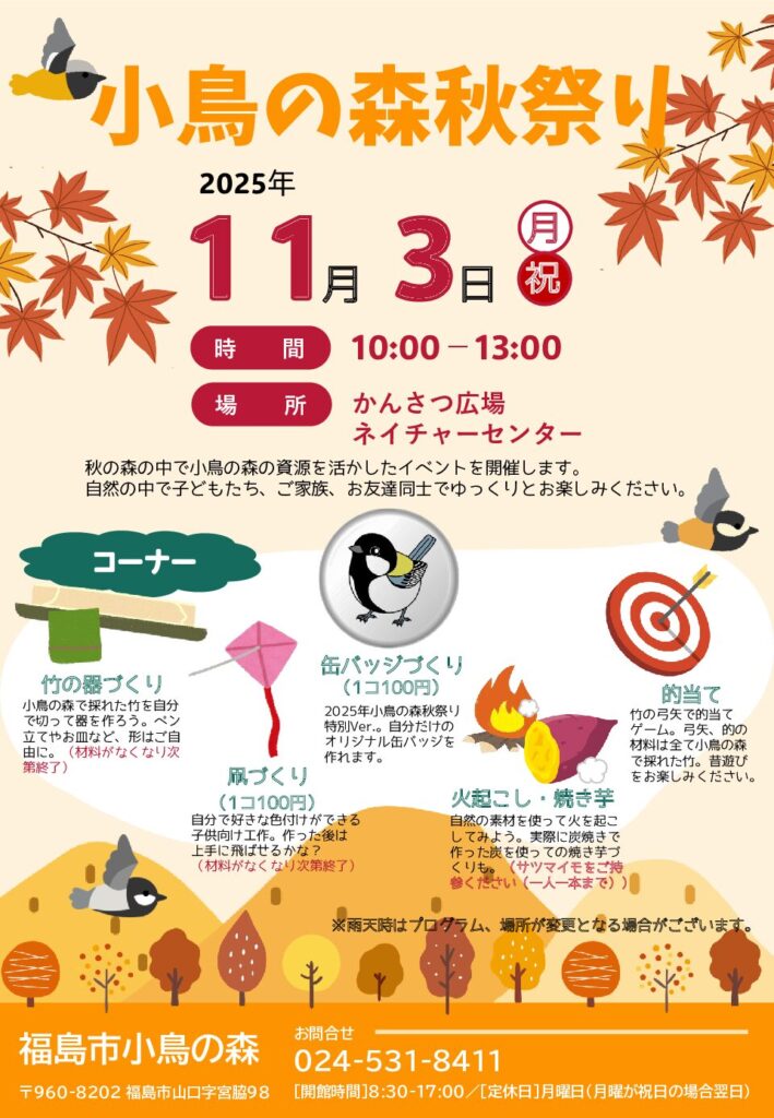 小鳥の森で行われるイベントや各所で行われる関連イベントのご案内です。