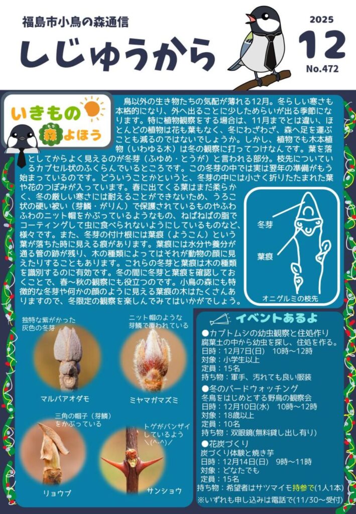毎月、小鳥の森で観察できる野鳥や森の様子などをお知らせしています。